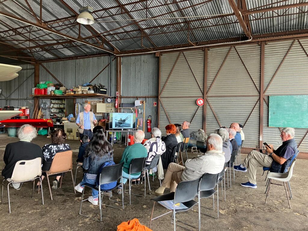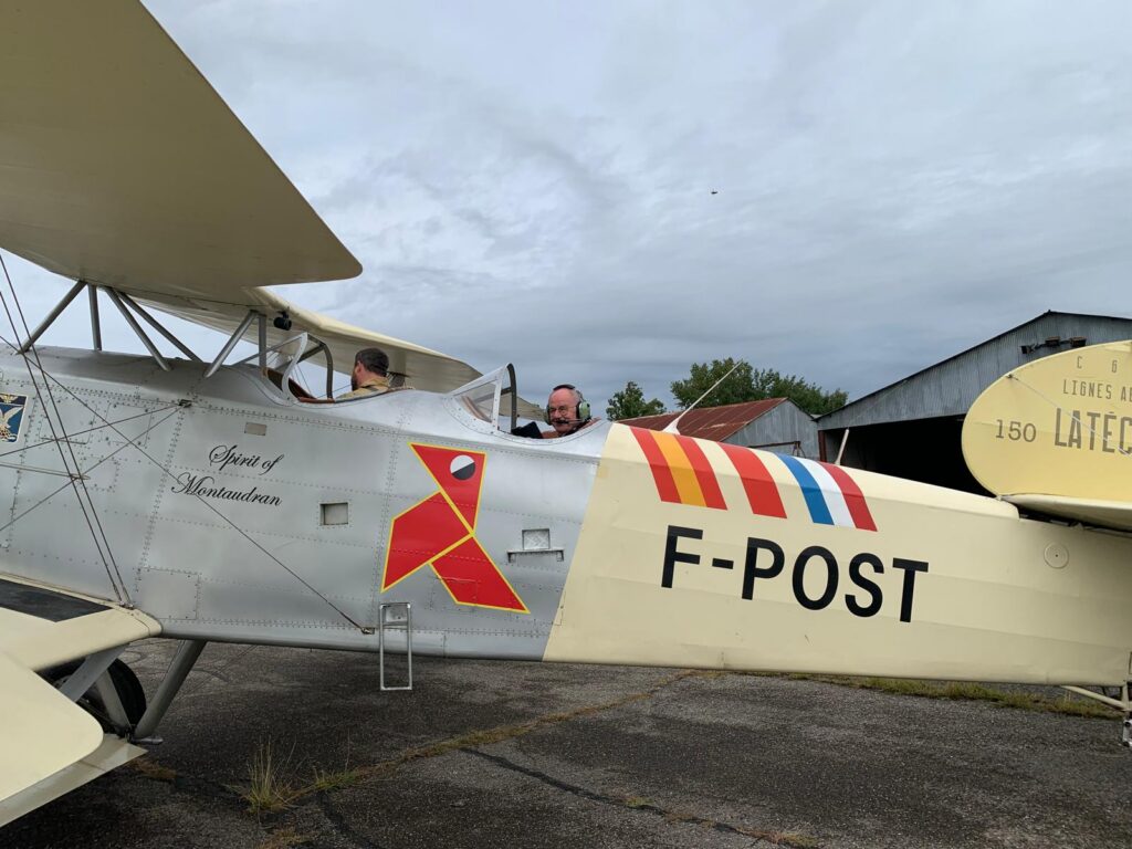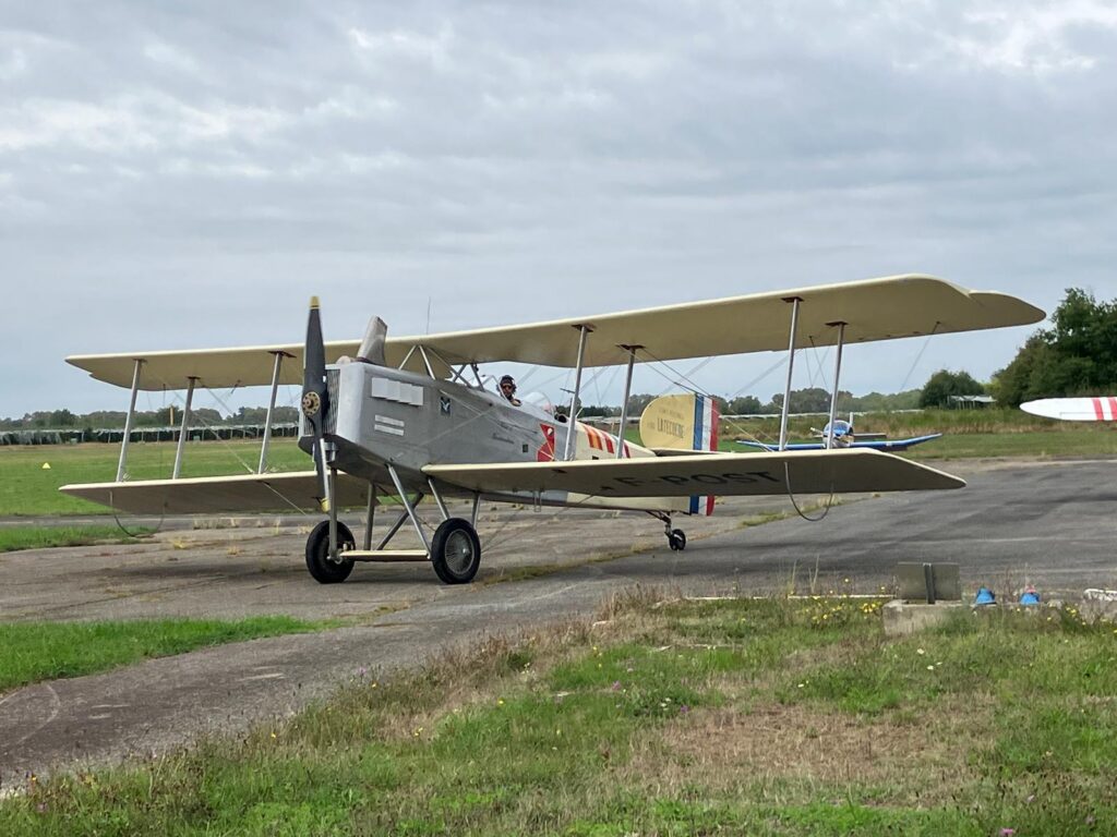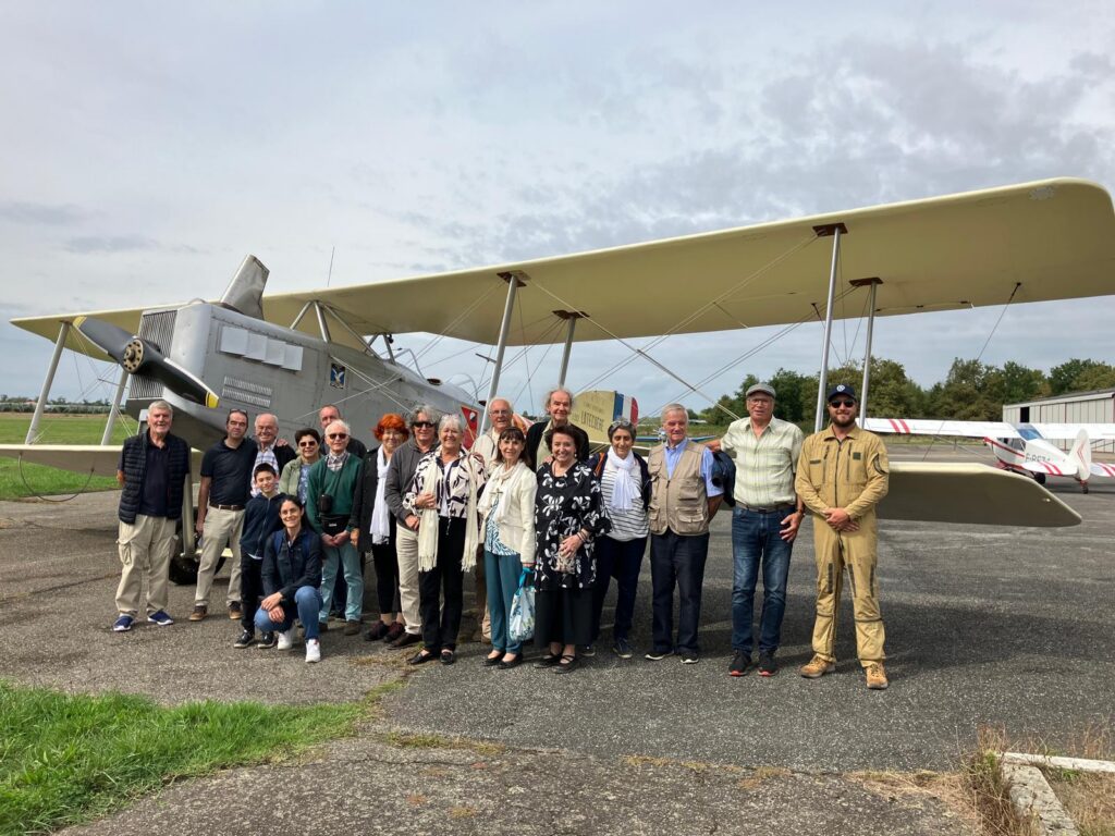 Organisée par l’Association des Amis de l’Envol des Pionniers en partenariat avec l’association Breguet XIV et son équipe de l’association d’Espace Aéronautique Culturel, cette journée du 07 septembre 2025 a permis aux 16 adhérents présents, de découvrir cet avion mythique qu’est le Breguet XIV, véritable pépite historique, grâce à François de Guiringaud secrétaire des deux associations et Léo Carussi pilote adjoint de Luc Gimazane Président des deux Associations .