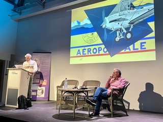 Fidèle à sa mission de passeur de mémoire et de transmission des valeurs des héros de l’Aéropostale, l’association des Amis de l’Envol des Pionniers s’est associée au carnettiste Laurent Chèze sous forme de quiz où les réponses se trouvaient pour la plupart sur sa fresque présentée dans la salle des Pionniers. Les visages des enfants en disaient long lorsqu’ils apprirent ce qu’étaient des avisos ou des phares aéronautiques et découvert les visages des acteurs de la Ligne connus ou moins connus. Et le hasard du tirage a récompensé un petit garçon de 9 ans qui a gagné le prix mis en jeu !