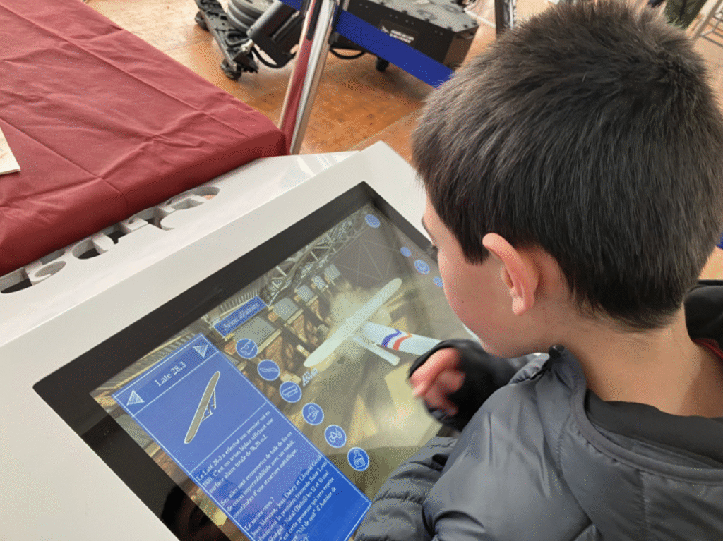 L’association des Amis de l’Envol des Pionniers a relevé le défi en invitant sur son stand les élèves de l’ESMA qui ont créé deux animations ludiques et pédagogiques à l’intention du grand public. Petits et grands ont ainsi pu effectuer un vol au-dessus de l’Espagne, de l’Afrique et de l’Amérique Latine dans des conditions variables en fonction des continents et des facteurs météorologiques. Ils ont également pu construire l’avion de leur choix en utilisant différentes structures d’avions Latécoère mises à leur disposition sur une console tactile.