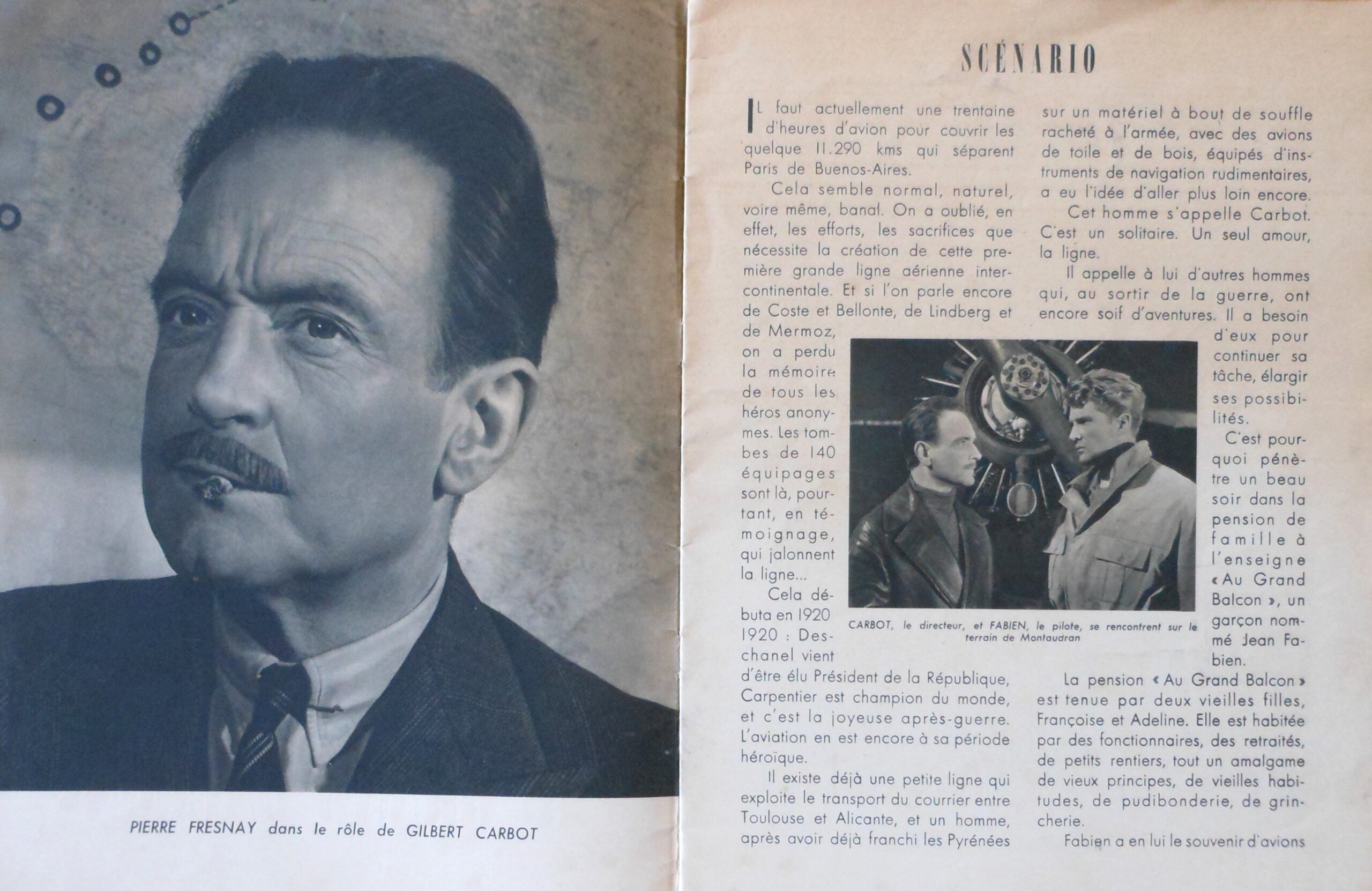On retrouve les acteurs Pierre FRESNAY dans le Rôle de Carbot (on devinera la similitude avec Didier DAURAT) et George Marchal dans celui de Fabien (qui incarne Jean Mermoz). Le film est présenté en sélection officielle en compétition au Festival de Cannes de 1949.