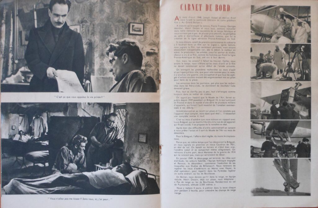 Le film sortie en novembre 1949, est réalisé par Henri DECOIN. Le scénario est écrit par l’écrivain Joseph KESSEL, lui-même ancien pilote et grand ami de Jean MERMOZ.