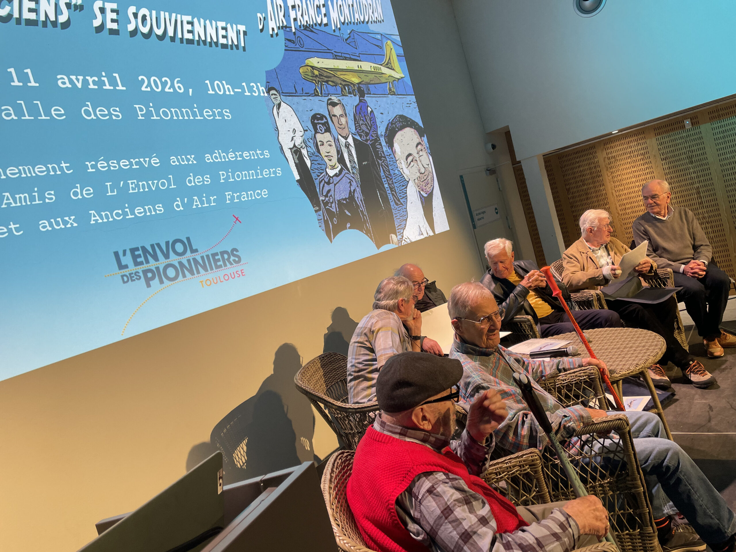 Toutes les portes et les portails des hangars du CRT d’Air France Montaudran se sont ouvertes à nouveau les 11 et 12 avril 2026 à l’occasion des journées « Raconte-moi Montaudran » organisées en partenariat avec L’Envol des Pionniers. Pendant ces deux rendez-vous ont été évoqués entre autres, les différents corps de métiers, les nombreux avions ayant atterri sur le centre, l’évolution de la piste au fil du temps, le volet social et la vie extra-professionnelle des employés, La Postale de Nuit. Autant de sujets qui ont fait ressortir beaucoup de noms, de souvenirs, d’anecdotes et d’émotions. Les « Anciens » ont évoqué leur attrait pour ce site, son histoire, le goût du métier. C’est de leur travail qu’ils ont pu reparler le lendemain au grand public curieux d’en savoir un peu plus sur le centre de révision de Montaudran et l’épopée des « Grandes Visites », lorsque les avions venaient pour un démontage complet et une révision générale. Une occasion de transmettre à la toute jeune génération aussi?