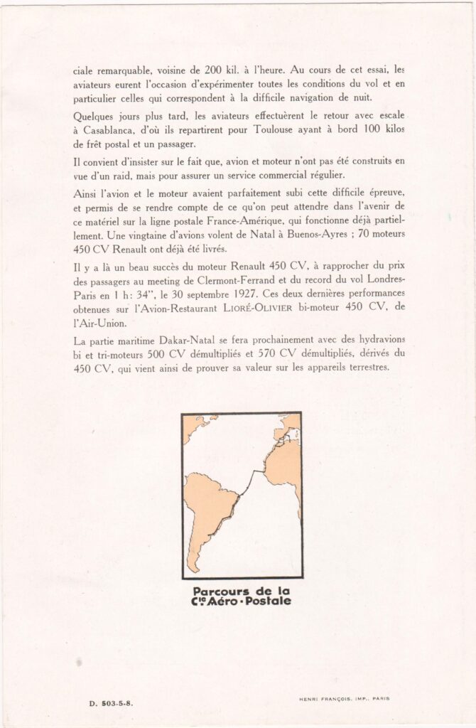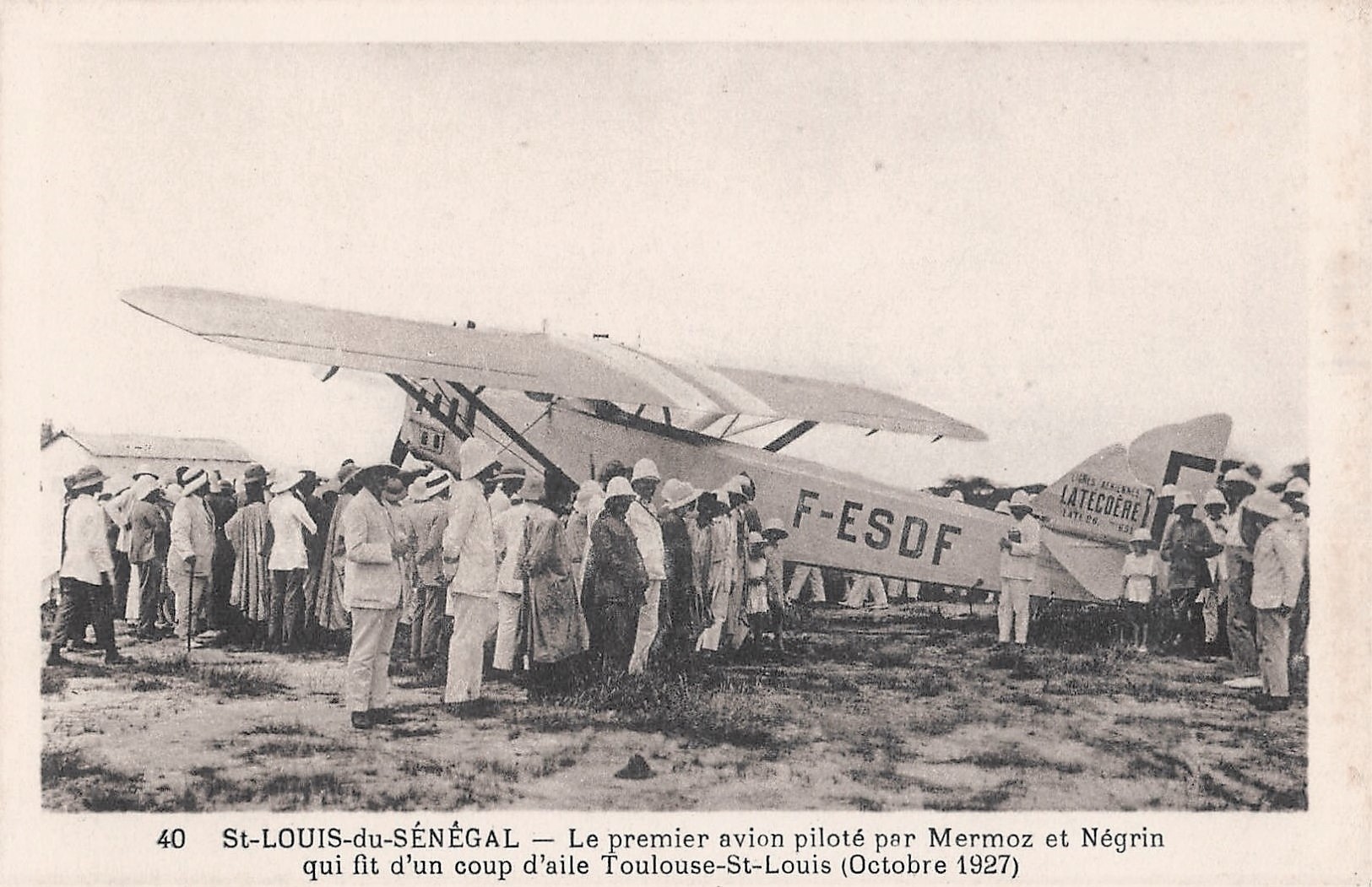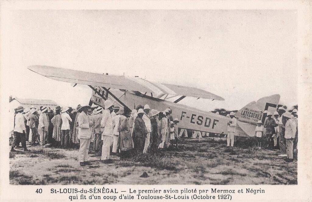 1927. Le 11 octobre, en Laté 26, il réalise avec Mermoz un vol sans escale entre Toulouse et Saint Louis du Sénégal. La légende dit que si l’hélice n’avait pas été brisée à l’atterrissage, l’équipage aurait tenté dans la foulée la première traversée postale de l’Atlantique sud.