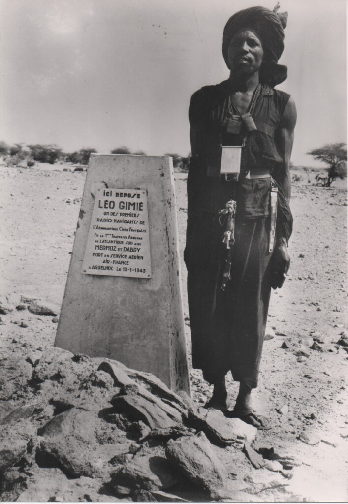 En 1926, afin de mettre en évidence les qualités d’une motocyclette par cette société, il tente d’effectuer la traversée du Sahara en se rendant de la Méditerranée au Niger, soit une distance de 2500 km. C’est au cours de ce raid que Léopold Gimié, pour sauver son coéquipier belge exténué qui s’arrêta, lui a donné toute sa réserve d’eau. Mais Léopold Gimié a présumé de sa résistance à la déshydratation. Recueilli par hasard par des méharistes du poste de Kidal, il est sauvé ainsi que son coéquipier. A son retour du Sahara, il entre à la Compagnie Générale Aéropostale le 1er décembre 1927 engagé par Edouard Serre, alors directeur des services Radiotélégraphistes, comme opérateur radio à Toulouse. Il sera ensuite affecté à Barcelone puis à Alicante.