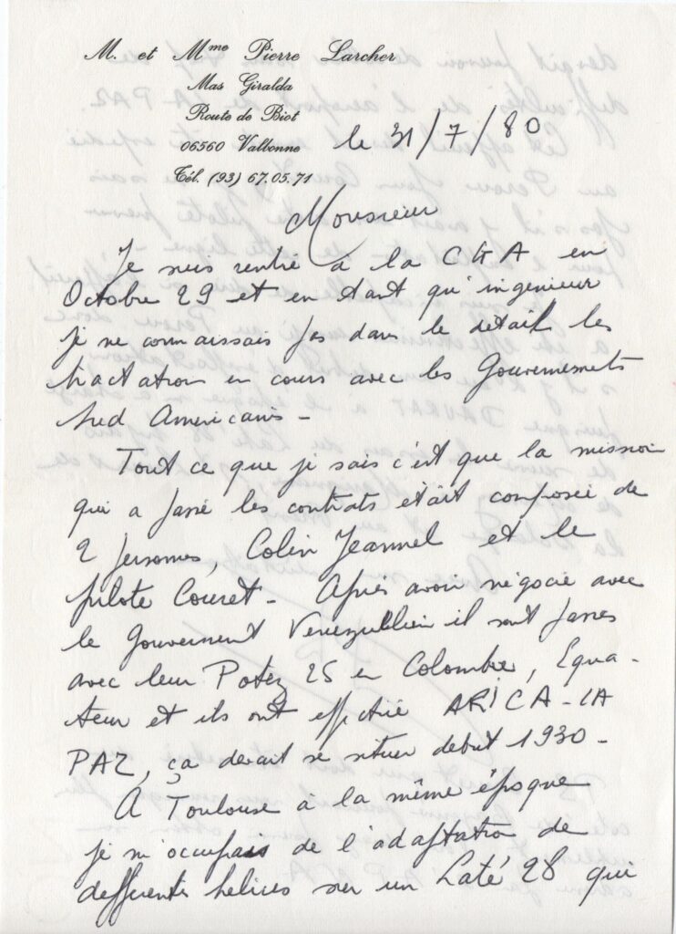 A partir de là, une fulgurante carrière conduira Pierre Larcher aux plus hauts postes techniques de l’Aéropostale puis d’Air France. Jean Dabry l’a très justement jugé en ces termes :